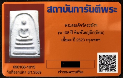 พระสมเด็จ วัดระฆังฯ รุ่น 108 ปี พิมพ์ใหญ่ ( บล็อคนิยม พิมพ์ลึก ) เนื้อผง ปี 2523 สภาพสวยเดิม มาพร้อมบัตรรับรองครับ