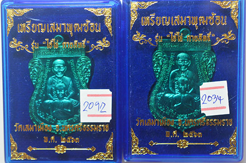 เหรียญเสมาพุฒซ้อน รุ่น ไ อ้ ไ ข่ กายสิทธิ์ วัดเสมาเมือง จ.นครศรีธรรมราช เนื้อสัตตะ โค๊ด เลข 2092+2034 |