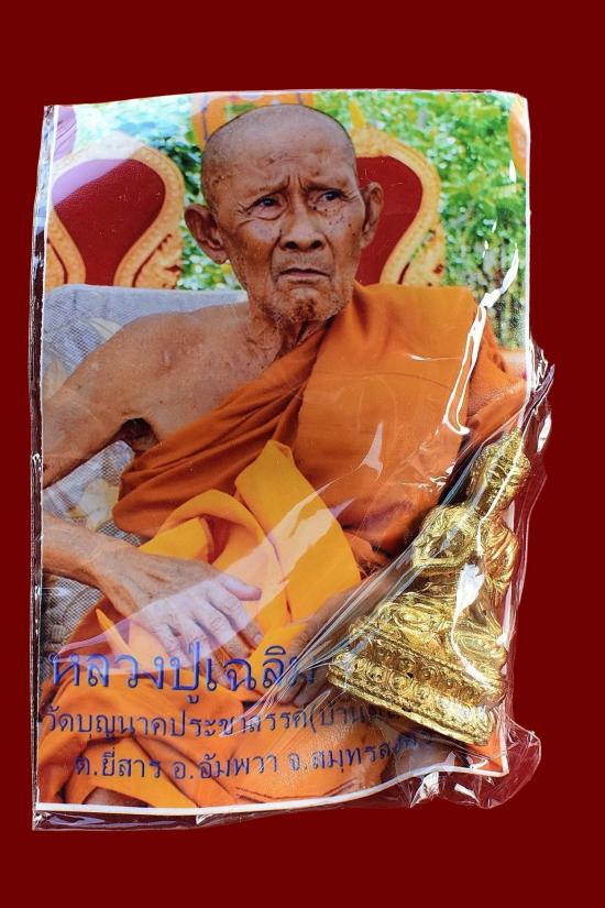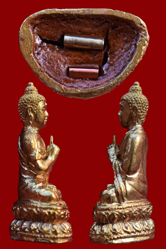 พระกริ่งมงคลจักรวาลใหญ่ รุ่นแรก เนื้อทองทิพย์ ใต้ฐานอุดผง หลวงปู่เฉลิม วัดบุญนาคประชาสรรค์ จ.สมุทรสงคราม ปี 2555 มีซองจากวัด สภาพตามรูป (No.1)