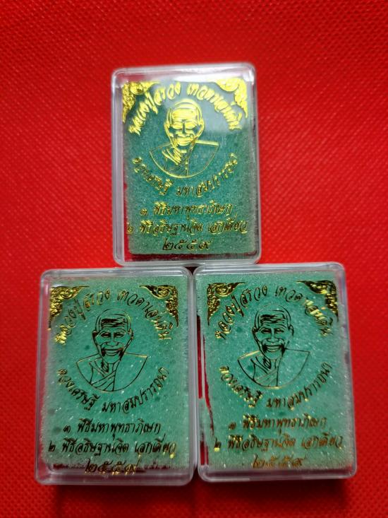 พระผงดวงเศรษฐี มหาสมปรารถนา หลวงปู่สรวง เทวดาเล่นดิน ฝังจีวรหลวงปู่สรวง และจีวรหลวงปู่หมุน วัดบ้านจาน จัดสร้างปี 2559 เคาะเดียว 3 องค์