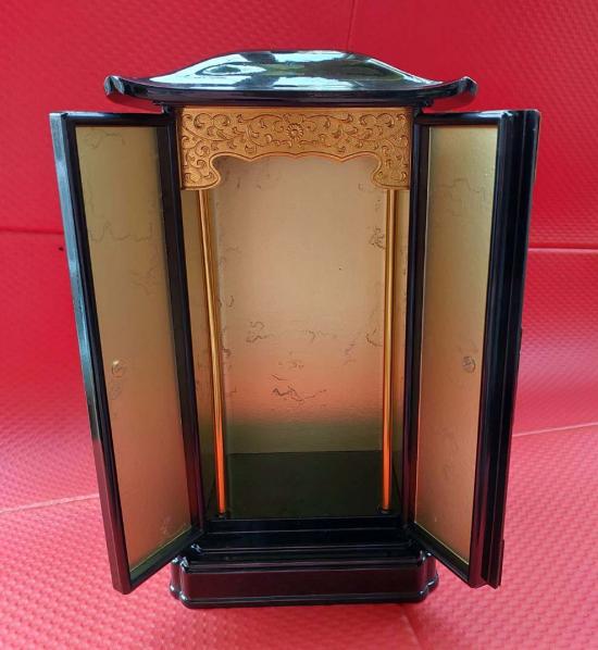 ตู้พระสไตล์ญี่ปุ่นแลกเกอร์ประดับตกแต่งด้วยแผ่นทองเหลืองแกะลาย |