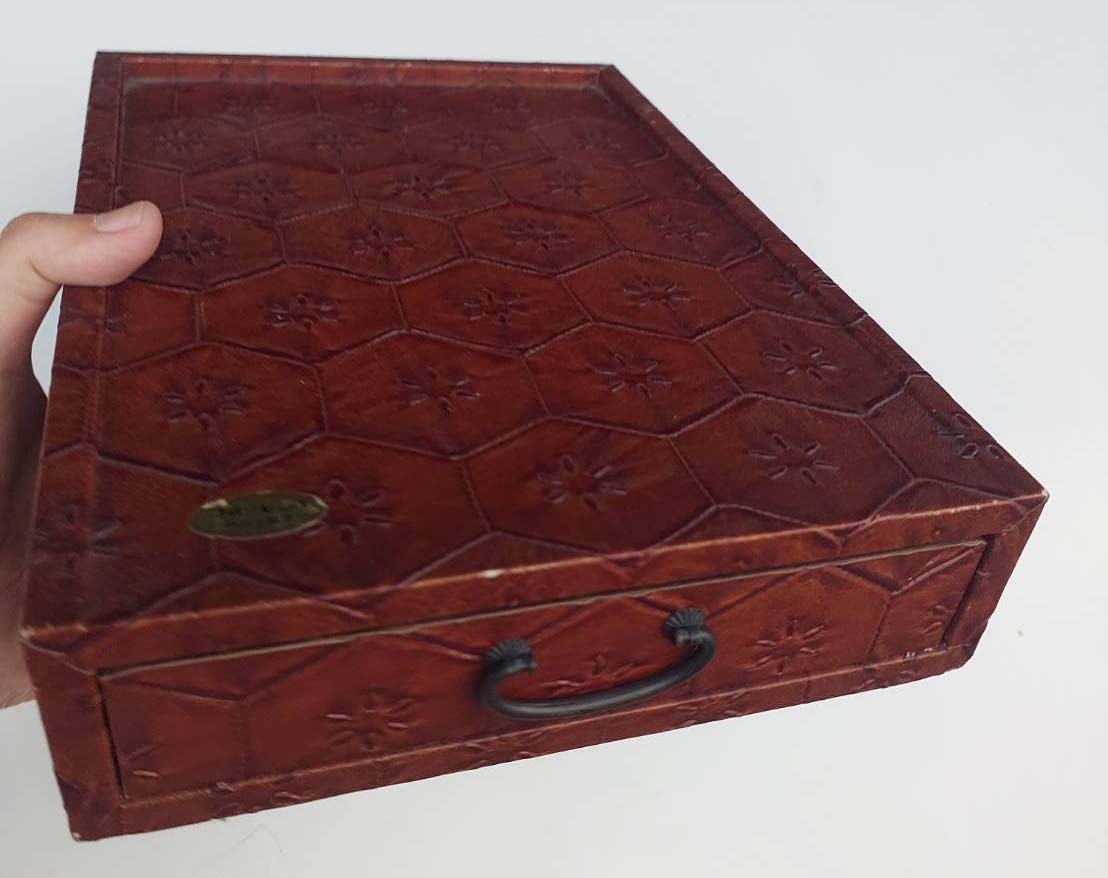 ***วัดใจ***กล่องไม้ลิ้นชัก หุ้มหนังแท้ตอกลายกระดองเต่าทรงกลม จาก Kanogiyaman-Vintage Japan Genuine Leather by Kanogiyaman สวยๆ |