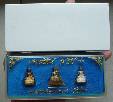 รูปหล่อ ชุดเนื้อเงิน 3 องค์ พระพุทธสิหิงค์ วัดพระสิงห์ เชียงใหม่ ปี40 กล่องเดิม สวยครับ |