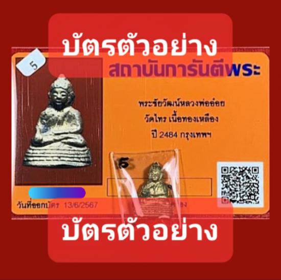 พระชัยฯ หลวงพ่ออ๋อย วัดไทร บางขุนเทียน กทม.ปี 2484 |
