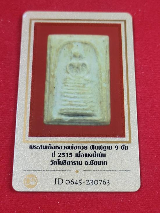 พระสมเด็จ หลวงพ่อกวย พิมพ์ฐาน9ชั้น เนื้อผงน้ำมัน วัดโฆสิตาราม ชัยนาท พร้อมบัตรรับรอง |