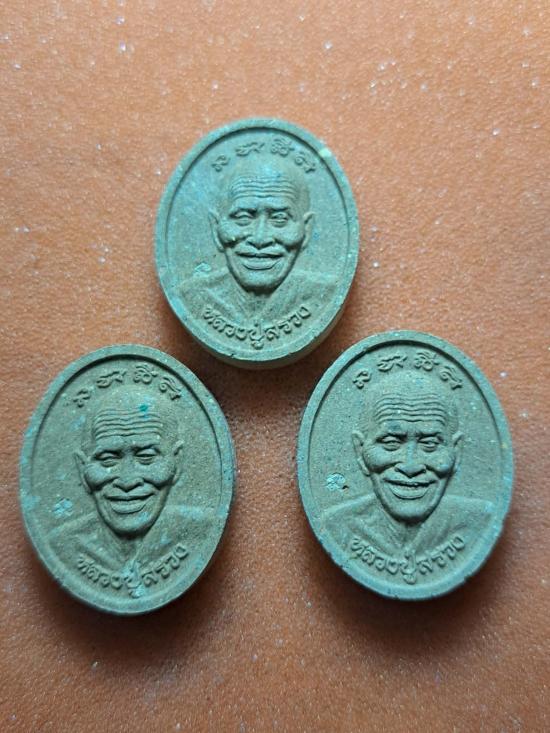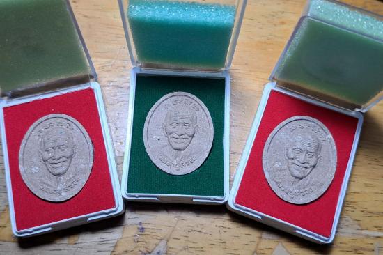 พระผงดวงเศรษฐี มหาสมปรารถนา หลวงปู่สรวง เทวดาเล่นดิน ฝังจีวรหลวงปู่สรวง และจีวรหลวงปู่หมุน วัดบ้านจาน จัดสร้างปี 2559 เคาะเดียว 3 องค์