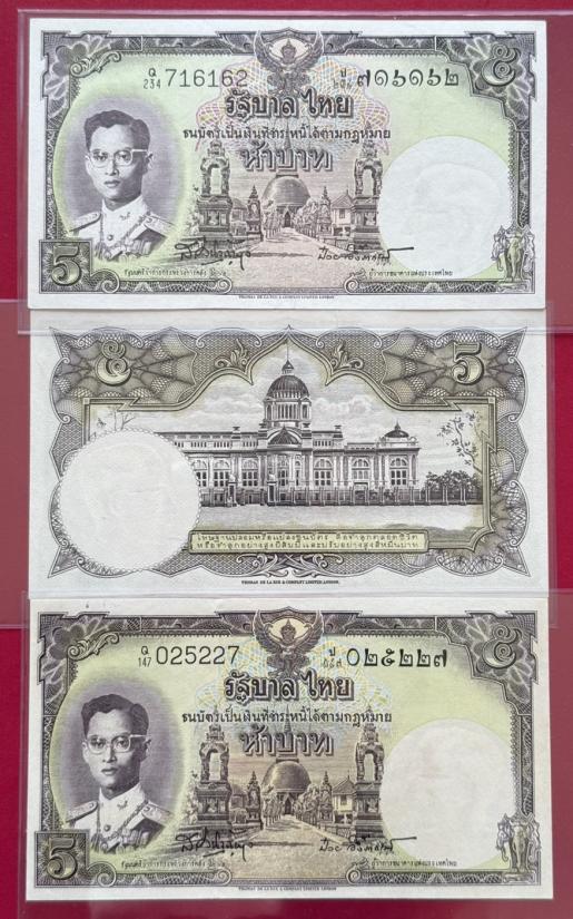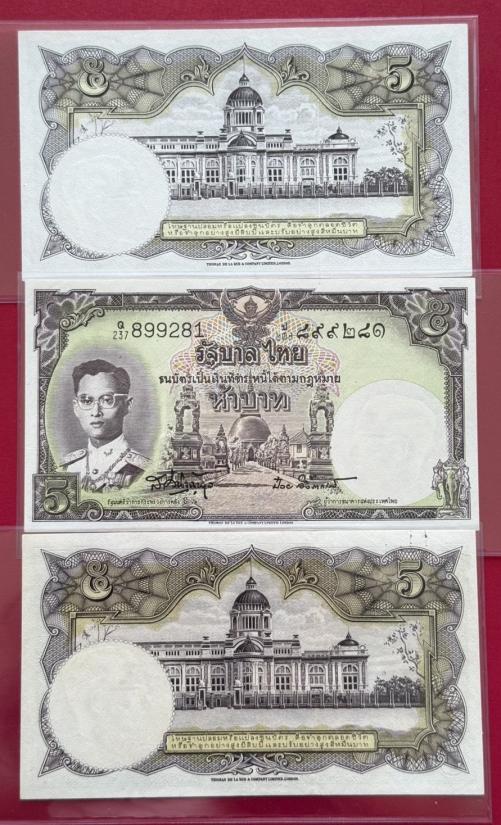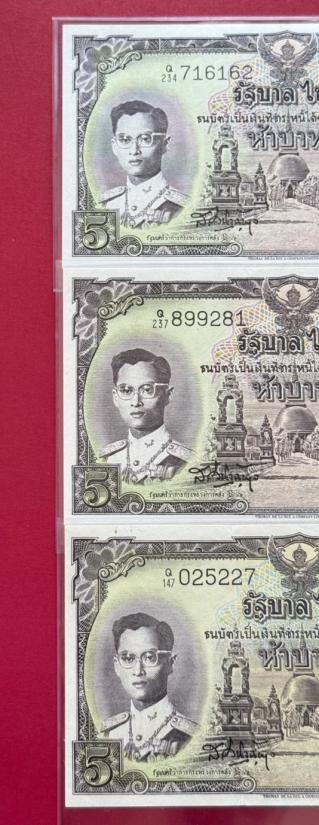 ธนบัตร 5 บาท รัชกาลที่ 9 แบบที่9 พิมพ์โทมัส จำนวน 3 ใบ สภาพสวยตามรูป |