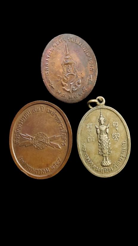 **100.**(3เหรียญ)เหรียญ ร.2 หลังพระพุทธนฤมิตร วัดอรุณ ปี2510+เหรียญพระแก้วมรกตหลัง ภปร. ปี2525+เหรียญกรมพระกำแพงเพชรอัครโยธิน ครบรอบ72ปี ทหารสื่อสาร ปี2539 |