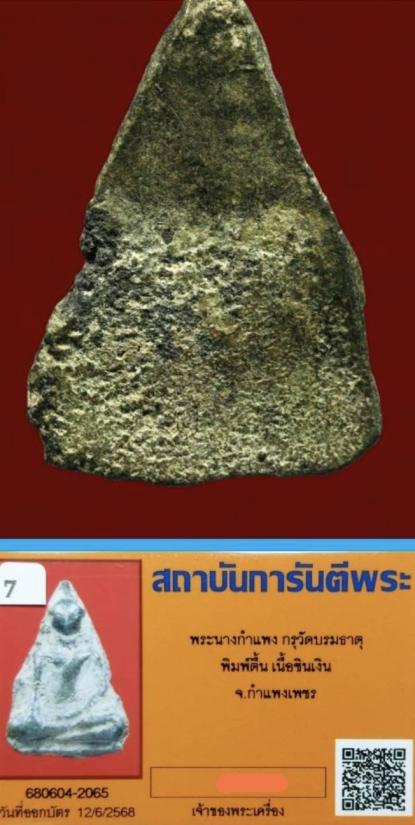 วัดใจเคาะเดียวแดง พระนางกำแพง พิมพ์ตื้น เนื้อชินเงิน กรุวัดบรมธาตุ จ.กำแพงเพชร