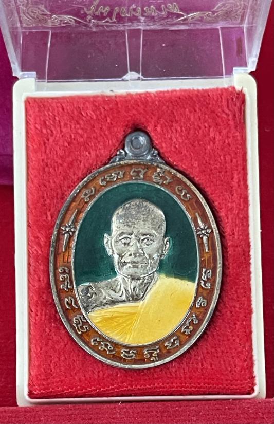 เหรียญไตรมาสหลวงปู่ม่น วัดเนินตามาก จ.ชลบุรี ปี๒๕๓๗ เนื้อเงินลงยา พร้อมกล่อง |