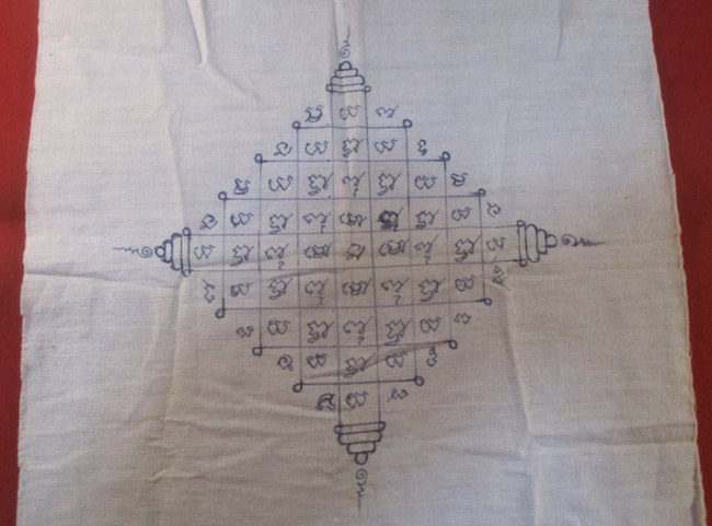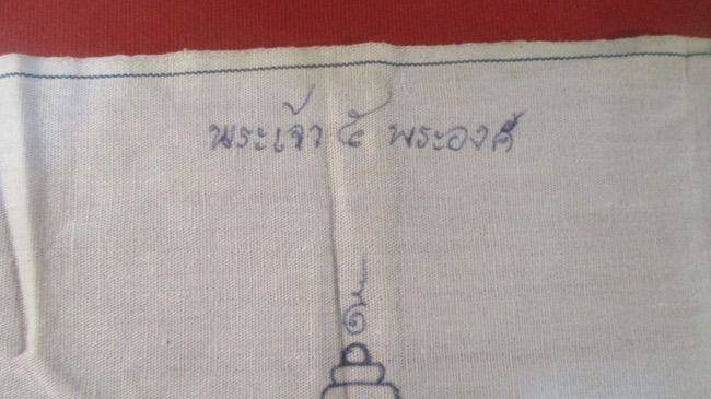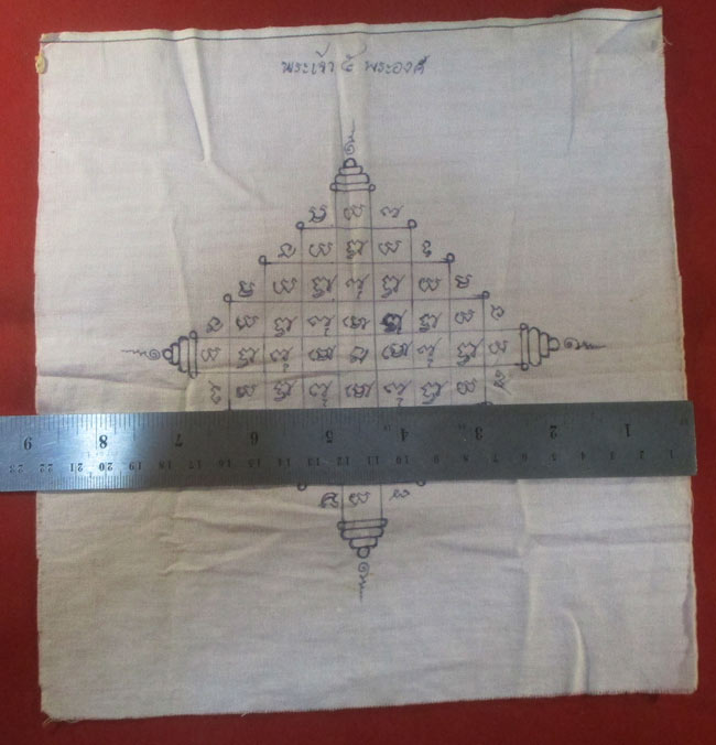 ผ้ายันต พระเจ้า ๕ พระองค์ ไม่ทราบที่ จารยันต์ด้วยมือ ครับ