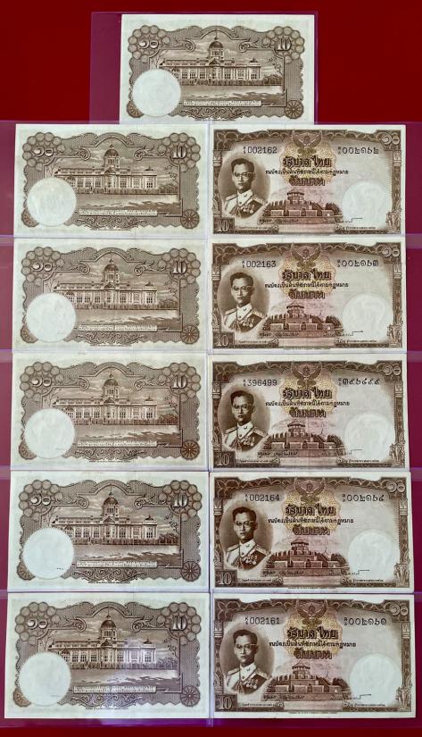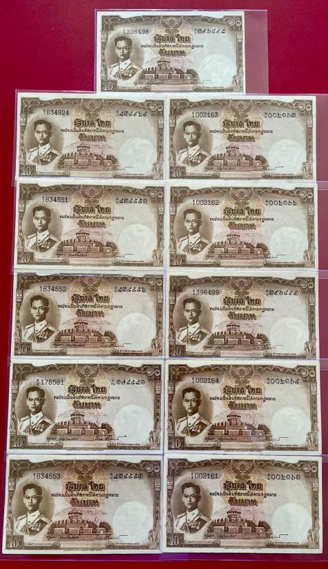 ธนบัตร 10 บาท รัชกาลที่ 9 แบบที่ 9 จำนวน 11 ใบ สภาพสวยตามรูป