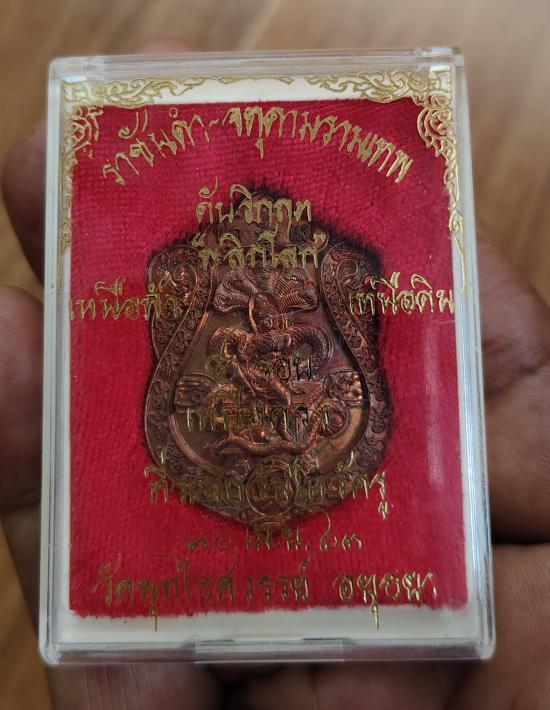 เนื้อทองแดงผิวไฟ มีจารหลัง พร้อมกล่อง