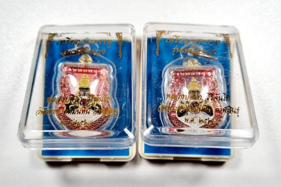 ราหู ลป.ศิลา รุ่นเหนือรุ่นเหนือดวง วัดพระธาตุหมื่นหิน เนื้อทองฝาบาตรลงยา 2เหรียญ เลี่ยมพร้อมใช้ |