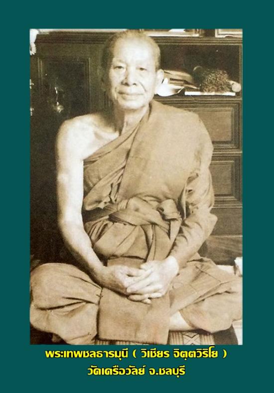 พระเทพชลธารมุนี (วิเชียร จิตตวิริโย) ท่านเป็นเจ้าคณะจังหวัด สมัยท่านยังมีชีวิตอยู่เป็นพระนักพัฒนา ชอบสร้างวัตถุมงคล เพื่อนำปัจจัยมาบูรณะวัดเครือวัลย์ จนเจริญรุ่งเรือง วัตถุมงคลของท่านได้สร้างตั้งแต่ปี 2500 เล็กน้อย จนกระทั่งท่านมรณภาพ ส่วนมากจะเป็น "พระปิดตาควัมบดี" ซึ่งสืบสานมาจากหลวงพ่อแก้ว วัดเครือวัลย์ ผู้เป็นหนึ่งในสุดยอดแห่งพระปิดตาแห่งเมืองสยามประเทศ