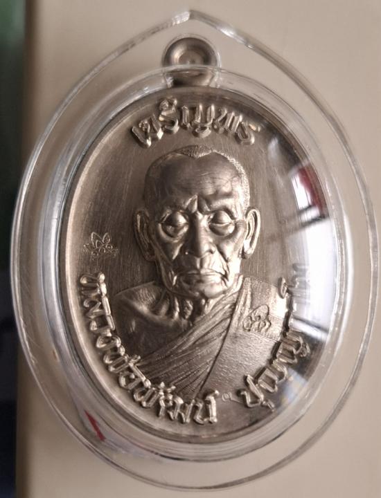 เหรียญเจริญบน 65 หลวงพ่อพัฒน์ ปุญฺญกาโม เนื้ออัลปาก้า เลข ๒๑๓๘ เลี่ยมพร้อมใช้สวยๆ พร้อมกล่องเดิม |
