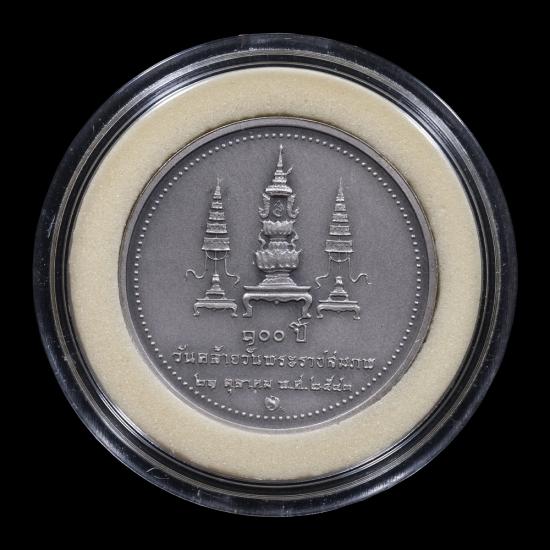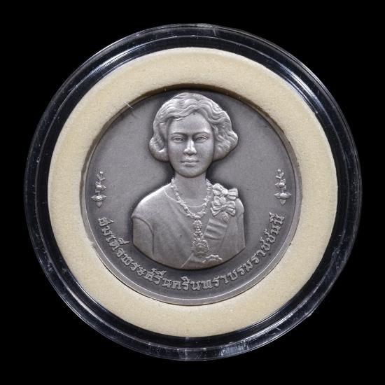 เหรียญที่ระลึก100 ปี พระราชสมภพสมเด็จย่า ปี 2543 เนื้อเงินรมดำพ่นทรายพิเศษ กล่อง+ใบ แดงเคาะแรก
