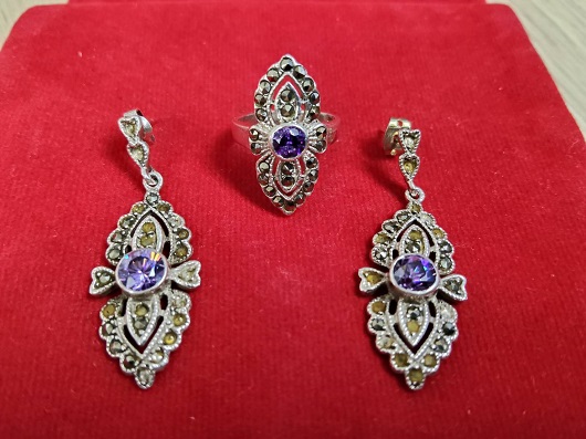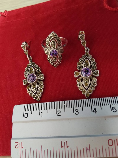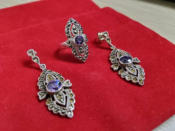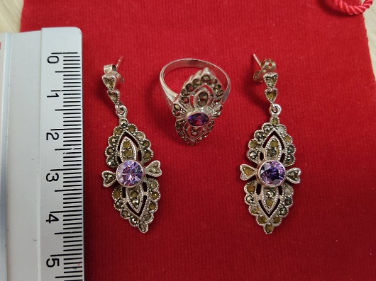 ***** ชุดต่างหูเงิน 1 คู่ และแหวนเงิน 1 วง มือสอง ตอก 925 สภาพสวย ตามรูป ***** |