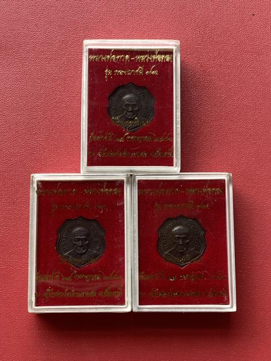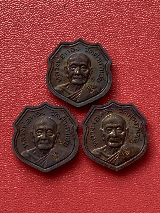 เคาะเดียวแดง หลวงปู่ทวด อาจารย์ทองรุ่นทองบารมี93 เนื้อทองแดงนอกรมดำ 3องค์ |