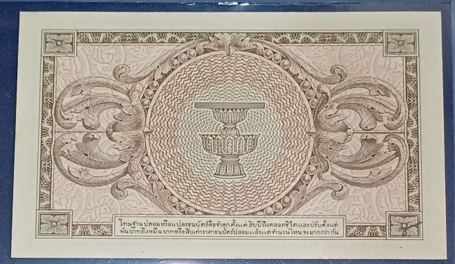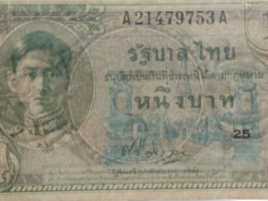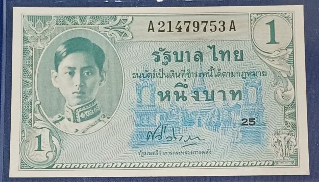 ธนบัตรรัชกาลที่ 8 แบบที่่ 8 ชนิด 1 บาท โรงพิมพ์ ทิวดอร์ เพลส อินท์ สหรัฐอเมริกา ปี พ.ศ 2489***สภาพไม่ผ่านการใช้ ไม่มีรอยพับ มีคราบเหลือง**UNC**
