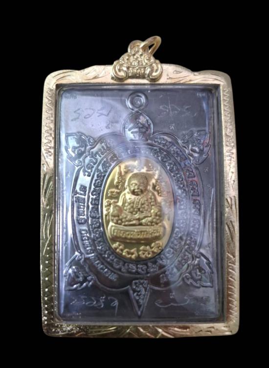 เหรียญ พญาเต่าเรือน รุ่น ๙ รวย ทองพันล้าน หลวงพ่อทอง สุทธสีโล วัดบ้านไร่ อ.ด่านขุนทด จ.นครราชสีมา ปี 2563 ( พร้อมเลี่ยมกรอบไมค่อนสีทอง )