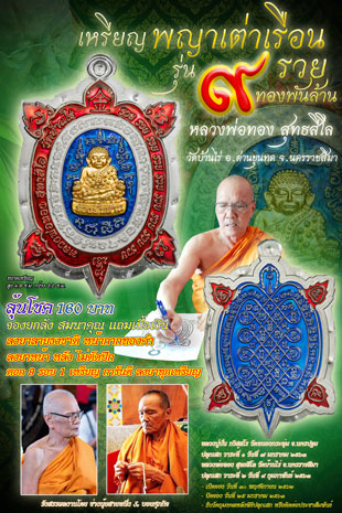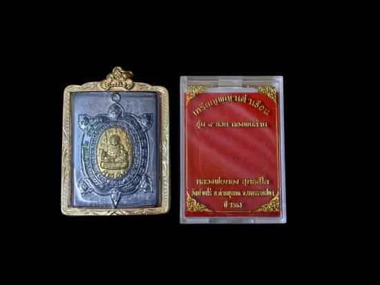 เหรียญ พญาเต่าเรือน รุ่น ๙ รวย ทองพันล้าน หลวงพ่อทอง สุทธสีโล วัดบ้านไร่ อ.ด่านขุนทด จ.นครราชสีมา ปี 2563 ( พร้อมเลี่ยมกรอบไมค่อนสีทอง ) |