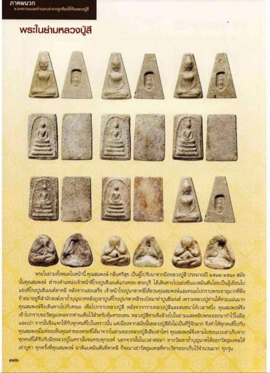 พระสมเด็จในย่าม ลป.สี วัดเขาถ้ำบุญนาคนาค ผู้ที่ไปกราบไหว้ลป.สี ท่านในสมัยแรกๆที่ท่านมาจำพรรษาที่วัดเขาถ้ำบุญนาค(ประมาณปี2512-2513) มักจะได้รับแจกพระชุดนี้ให้กลับไปเป็นศิริมงคลครับ |