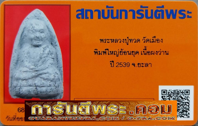 รายละเอียด หลวงปู่ทวด วัดเมือง พิมพ์ใหญ่ย้อนยุค เนื้อผงว่าน ปี2539 มาพร้อมบัตรรับรองครับ