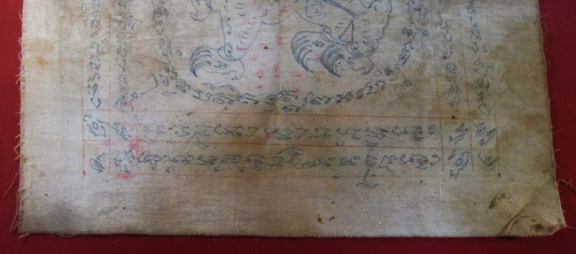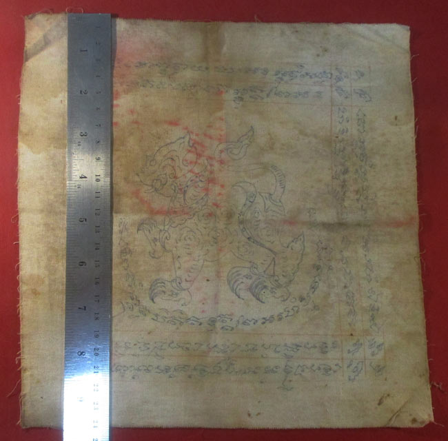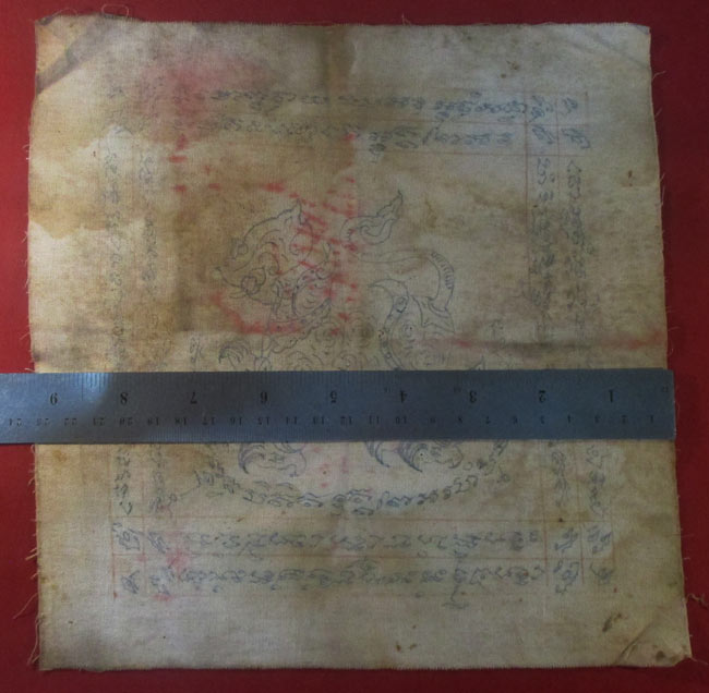 ผ้ายันต์ ไม่ทราบที่ จารยันต์ด้วยมือ ยันต์สวย เนื้อผ้าดูเก่า ครับ
