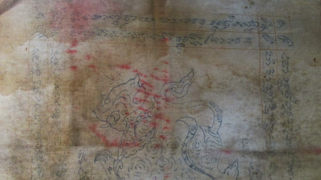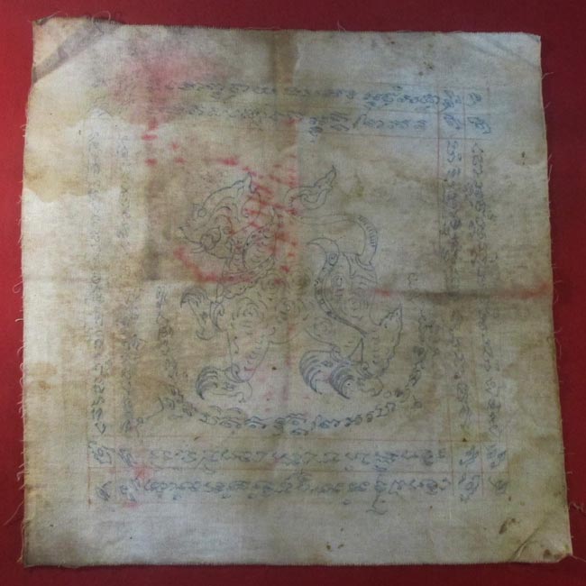 ผ้ายันต์ ไม่ทราบที่ จารยันต์ด้วยมือ ยันต์สวย เนื้อผ้าดูเก่า ครับ (พระบ้าน ครับ) |