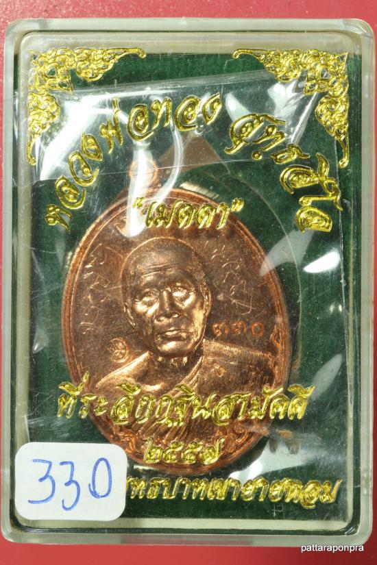 เหรียญหลวงพ่อทอง วัดเขายายหอม รุ่นเมตตา ปี 2557 เนื้อทองแดง มีจารหลวงพ่อทอง หมายเลข 330 |