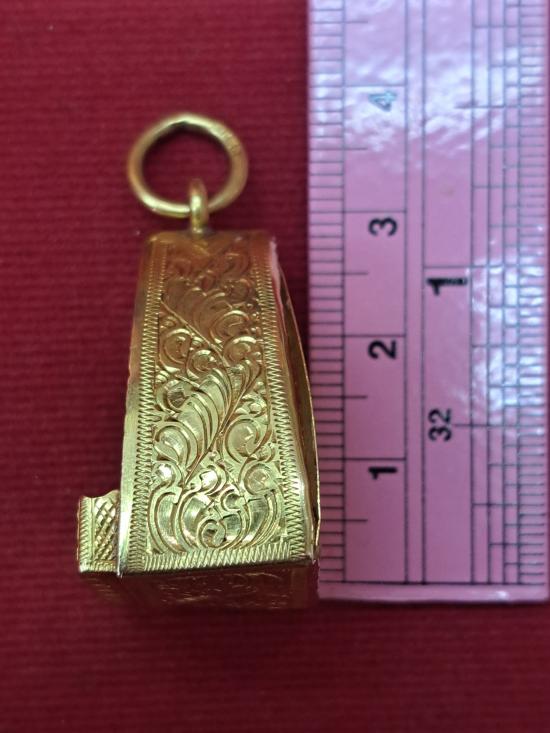 กรอบมือ2 ทองคำแท้ตี 90% ใส่รูปหล่อคณาจารย์ทั่วไป น้ำหนักทอง 4.59 กรัม กรอบสภาพสวยๆครับแผ่นปิดหลังแกะลายสวย |