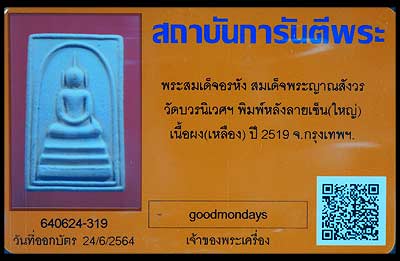 สมเด็จอรหัง ปี2519 วัดบวรนิเวศวิหาร กทม สมเด็จญาณฯ.ลป.สิม.ลป.โต๊ะ ร่วมปลุกเสก |
