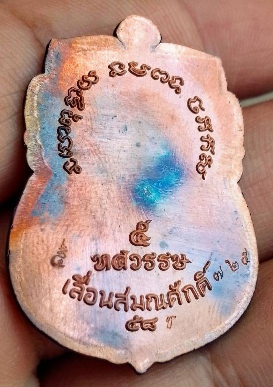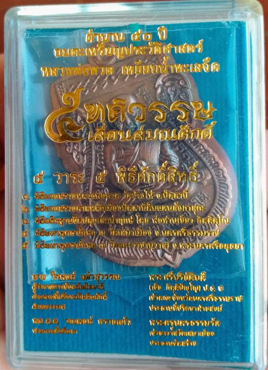 เหรียญเลื่อนสมณศักดิ์ หลวงปู่ทวดปี 58 เนื้อชนวนไม่ตัดปีกหลังกึ่งเรียบ (ชุดเนื้อเงินหน้ากากทองคำ) ตอกนัมเบอร์ 725 พร้อมกล่องเดิม สภาพสวย