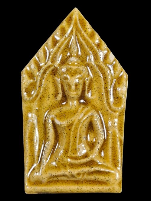 พระขุนแผนเนื้อเซรามิคเคลือบเหลือง หลวงพ่อลำใย ( หลวงตาลำใย )วัดสะแก |