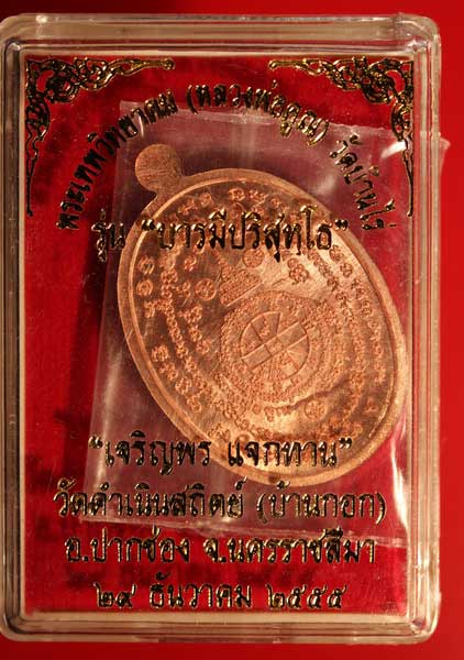 พระสวย.. เหรียญหลวงพ่อคูณ เจริญพรแจกทาน (เจริญพร2) เนื้อทองแดง No.629 พร้อมกล่องเดิม |