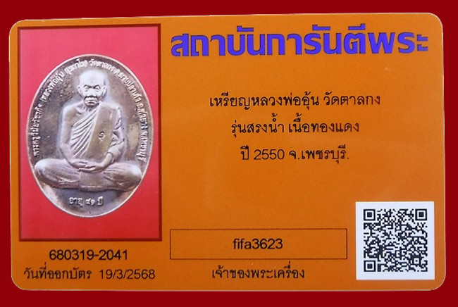 แดงที่เคาะแรก !!! เหรียญรุ่นสรงน้ำ พิมพ์ใหญ่ หลวงพ่ออุ้น วัดตาลกง ปี2550 + บัตรพระแท้ |