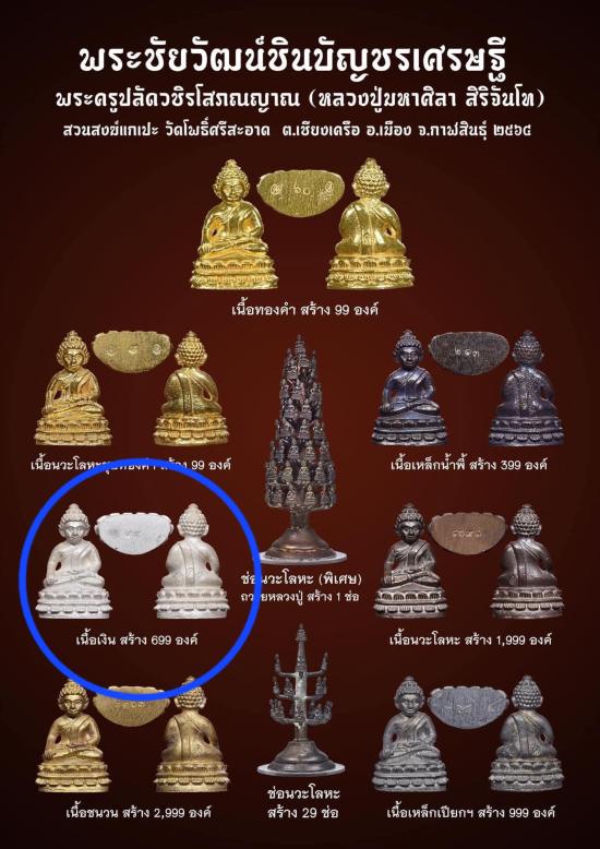 พระชัยวัฒน์ ชินบัญชรเศรษฐี รุ่นแรก ยุคต้น ปี64 หลวงปู่มหาศิลา หลวงปู่ศิลา สิริจันโท สวนสงฆ์แกเปะ วัดโพธิ์ศรีสะอาด จ.กาฬสินธุ์ เนื้อเงิน เลข ๖๒๗ มีกล่องเดิม |