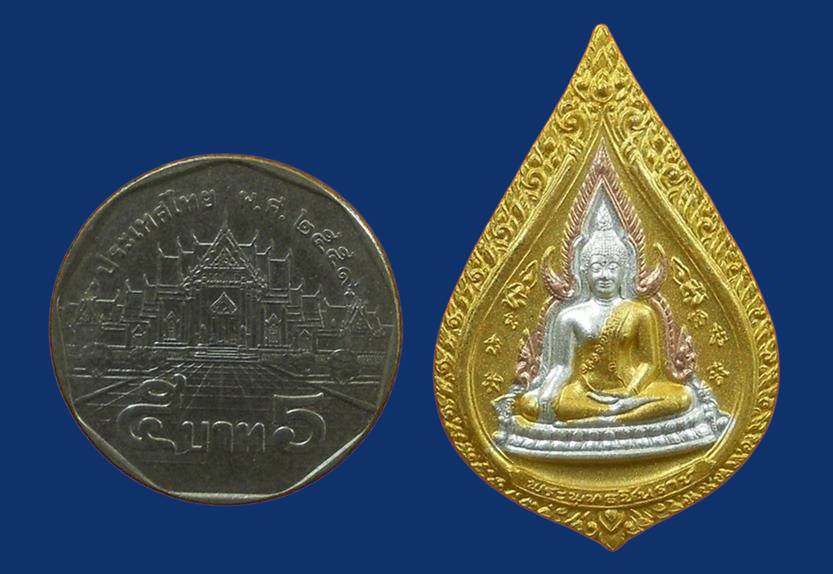 เหรียญหยดน้ำพระพุทธชินราช พิมพ์ใหญ่ เนื้อสามกษัตริย์ รุ่น ปิดทอง ปี 2547 สภาพสวยเดิมๆ ครับ