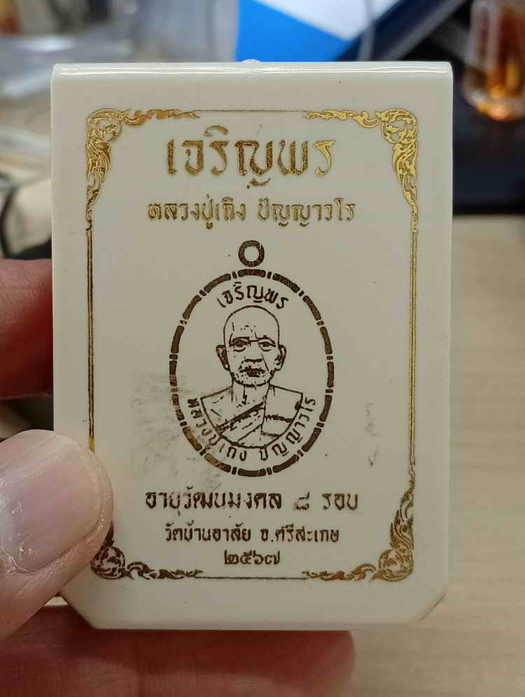 วัดใจ 100 เหรียญเจริญพร หลวงปู่เถิง วัดบ้านอาลัย จ.ศรีสะเกษ 2567 ตัดชิด นวะ ลงยา ฝังเพชร หมมายเลข 64 กล่องเดิม |