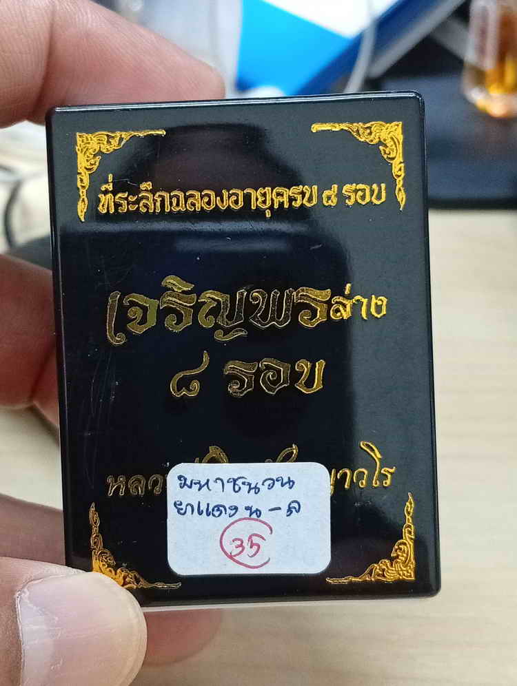 วัดใจ 100 เหรียญเจริญพรล่าง 8 รอบ หลวงปู่เถิง วัดบ้านอาลัย จ.ศรีสะเกษ 2567 มหาชนวน ลงยาแดง หมายเลข 35 กล่องเดิม |
