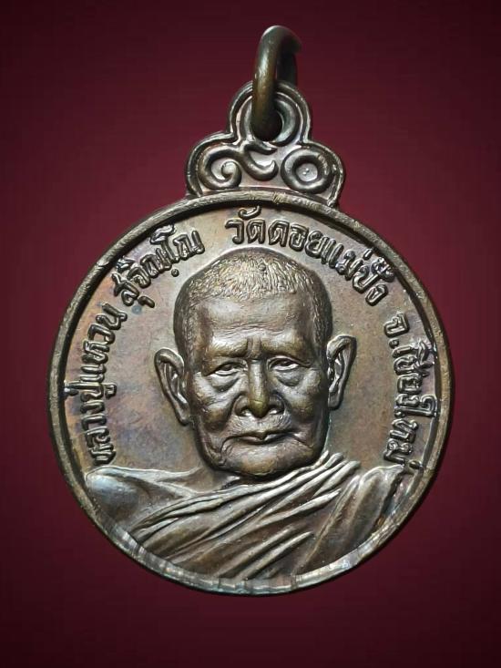 เหรียญร่มโพธิ์ หลวงปู่แหวน สุจิณโณ วัดดอยแม่ปั๋ง จ.เชียงใหม่ ปี2521 สวยเดิมครับ |