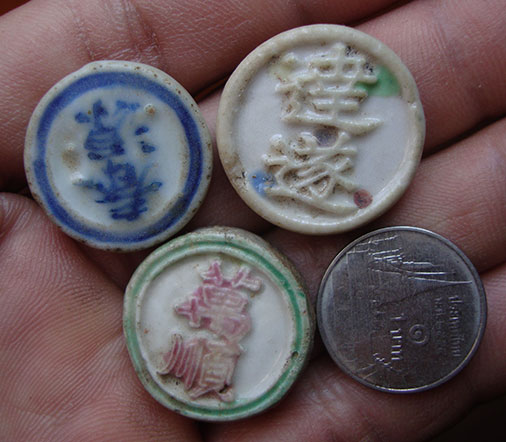 เหรียญจีน เนื้อกระเบื้อง ( 3 เหรียญ ) ไม่ทราบที่ครับ |