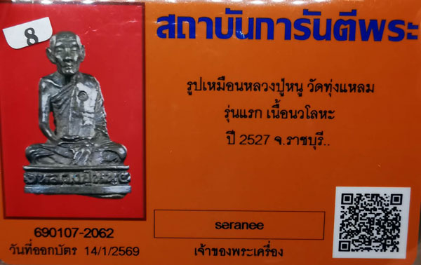 รูปเหมือนหลวงปู่หนู วัดทุ่งแหลม รุ่นแรก เนื้อนวโลหะ ปี2527 จ.ราชบุรี + บัตรG-pra สภาพเดิมค่ะ |
