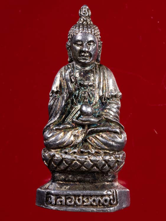 รูปหล่อพระยูไล (พระศรีศากยมุนี) รุ่น ฉลองวัดเล่งเน่ยยี่ ครบ 130 ปี ใต้ฐานอุดผงไวโรจน์ ฝังตะกรุดมมหาลาภ สูง 2.8 เซ็น เนื้อเงิน ตอกโค้ด