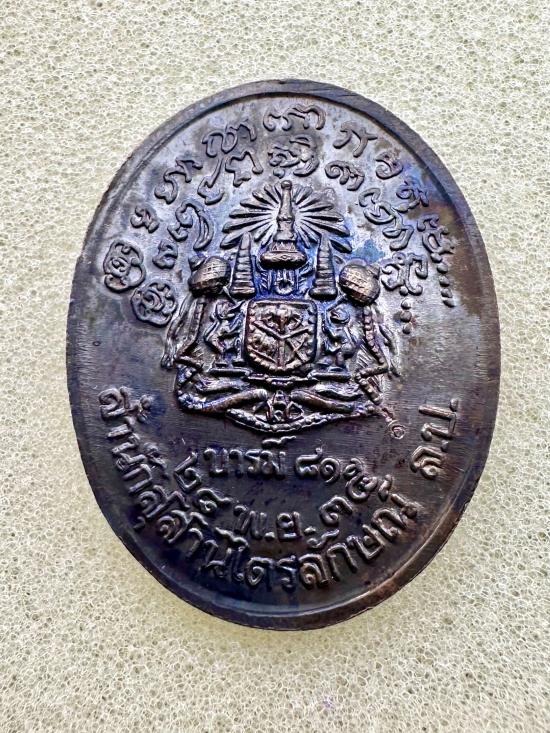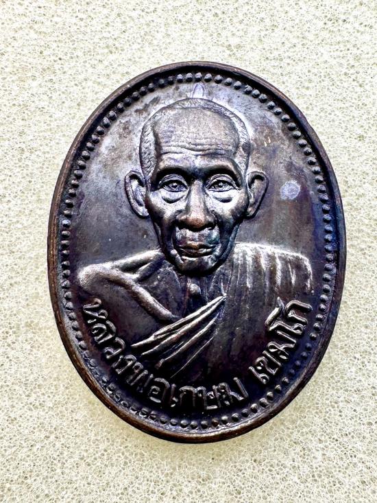 เหรียญรูปไข่เนื้อทองแดงรมดำ รุ่นบารมี81 หลวงพ่อเกษม เขมโก ปี2535 พร้อมซองเดิม