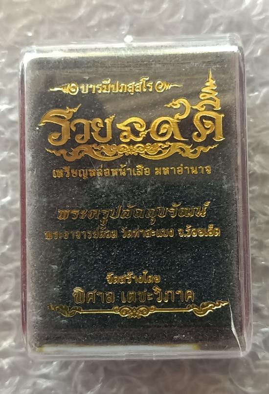 พระอาจารย์ต้อม วัดท่าสะแบง จ.ร้อยเอ็ด รุ่นรวยนะ9ดี เหรียญหล่อหน้าเสือหลังยันต์ |