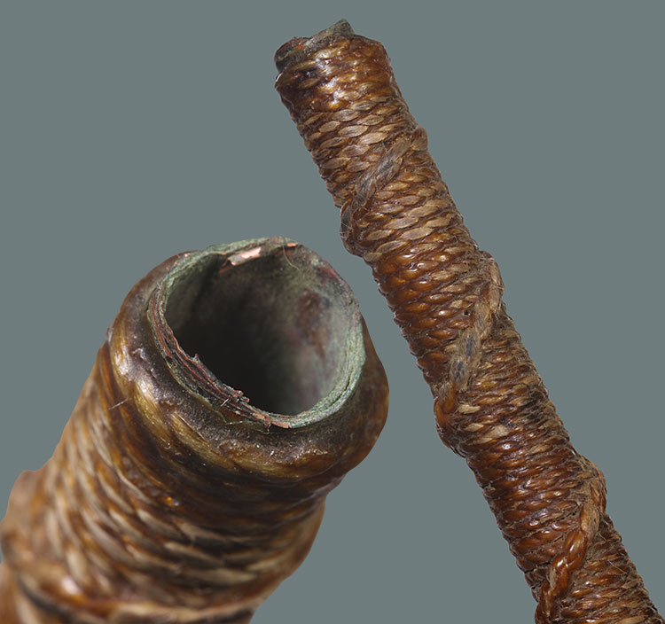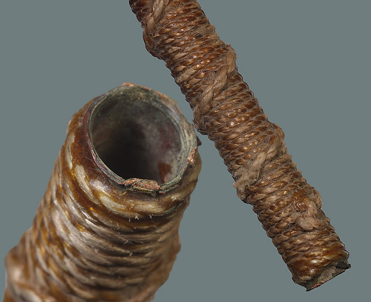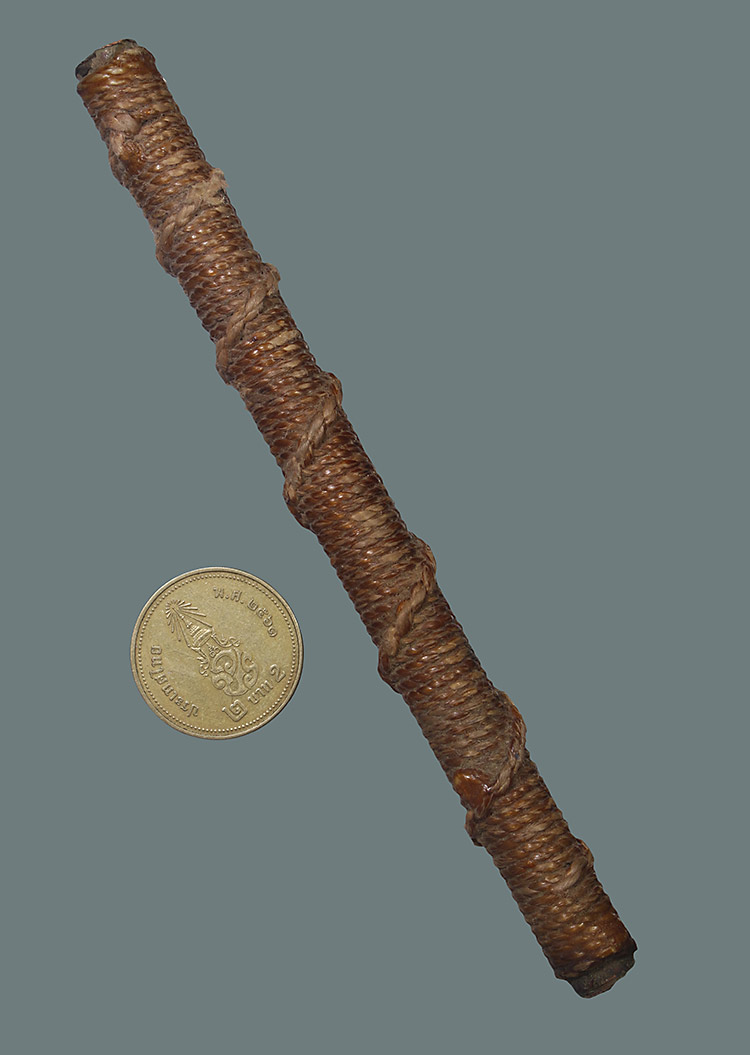 วัดใจ**เครื่องราง ตะกรุดถักเชือกเนื้อทองแดงเก่า ยาว 5 นิ้ว.ไม่ทราบที่....สภาะสมบูรณ์ครับ |