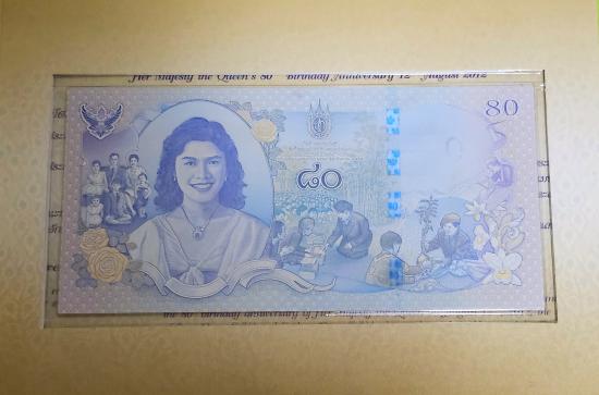 ธนบัตรเฉลิมพระเกียรติสมเด็จพระนางเจ้าสิริกิติ์ พระบรมราชินีนารถ เนื่องในโอกาสพระราชพิธีมหามงคลเฉลิมพระชนมพรรษา ๘๐ พรรษา ๑๒ สิงหาคม ๒๕๕๕ ราคาเปิดประมูล 100 บาท |