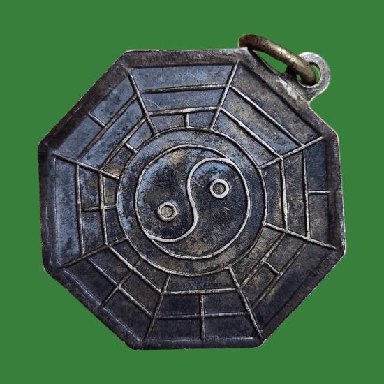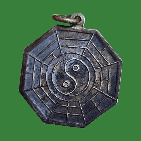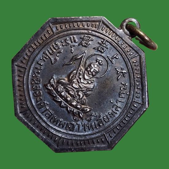 เหรียญศาลเทพเจ้าไท้เสียงเล่ากุน อ.แกลง ระยอง สร้างในงานฉลองศาลเทพเจ้าไท้ฯ เนื้อเงิน |